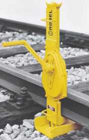 起道(提升)操作——將機立放使齒條鉤舌部分置于鋼軌或重物下,把撬棍插入搖桿4孔內,用力上下擺動撬棍即可把軌排或重物逐齒提升至所需高度。