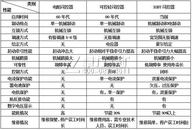 電阻調(diào)速司控器與IGBT司控器特性比較表