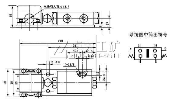 壓差開(kāi)關(guān)的閥體和行程開(kāi)關(guān)組裝在一塊底板上。潤(rùn)滑脂在壓力的作用下從主管道B進(jìn)入壓差開(kāi)關(guān)閥體活塞的右腔,主管道A卸荷。一旦兩條主管道的壓差達(dá)到5MPa時(shí),活塞克服左腔內(nèi)彈簧力向左移動(dòng),并推動(dòng)行程開(kāi)關(guān),使觸點(diǎn)1和2閉合,發(fā)出脈沖訊號(hào)至系統(tǒng)電控箱,責(zé)令換向閥換向,這時(shí)主管道A受壓,B卸荷,活塞在二端腔內(nèi)彈簧的作用下對(duì)中,行程開(kāi)關(guān)觸點(diǎn)1和2斷開(kāi),觸橋處中位。系統(tǒng)開(kāi)始第二周期工作,一旦主管道A和B間壓差又達(dá)到5MPa時(shí),活塞向右移動(dòng),行程開(kāi)關(guān)觸點(diǎn)3和4閉合,脈沖訊號(hào)再次使系統(tǒng)中的換向閥換向,開(kāi)始下次循環(huán)工作