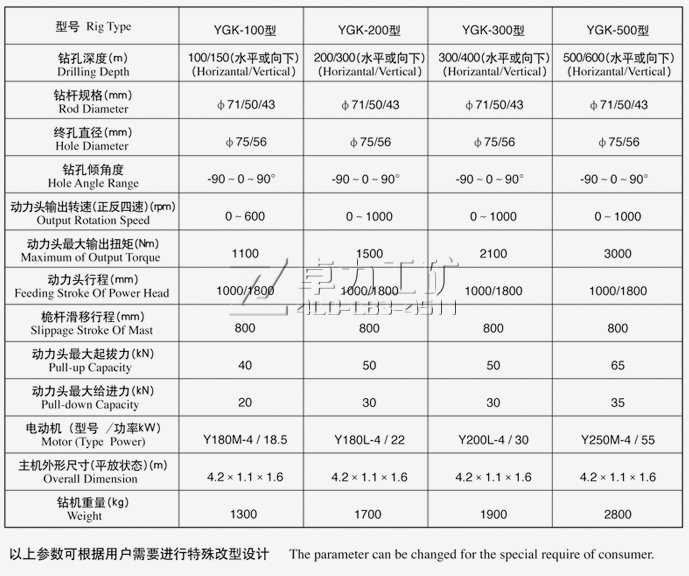 三、YGK全液壓坑道鉆機型號:YGK-100、YGK-200、YGK-300、YGK-500