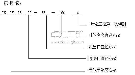 IS、IY、IR型單級單吸離心泵各有29個基本型號,同一型號的泵因改變?nèi)~輪外徑而有不同的性能(在泵型號后面加上A、B等字母表示)。但只用四根軸和四個懸架部件,零件通用化程度高達92%以上。