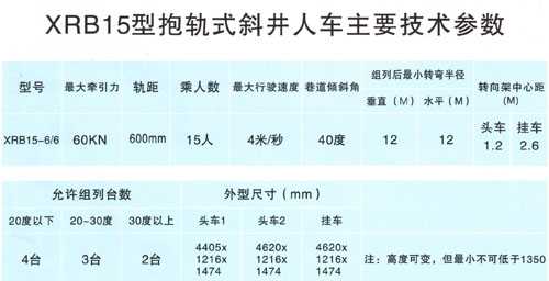 XRB15型抱軌式斜井人車技術(shù)參數(shù)