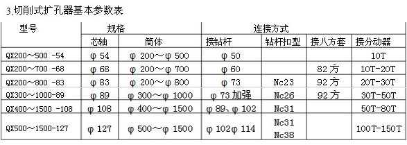 3、擴(kuò)孔器的規(guī)格:根據(jù)擴(kuò)大的孔徑不同,從200mm到1500mm。