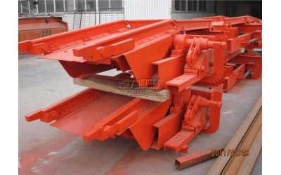 YWC型穩(wěn)罐搖臺為一段可擺動軌道,一端繞固定軸擺動,另一端當(dāng)罐籠停好后搖尖搭接在罐籠邊緣的導(dǎo)軌襯上,連接了罐內(nèi)與車場中的軌道,便于礦車進出罐籠。