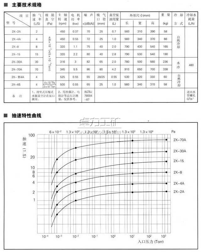 三、2XZ型直聯(lián)真空泵型號及技術(shù)參數(shù)表
