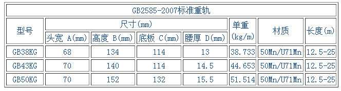重軌 38KG.43KG.50KG.60KG 75KG;