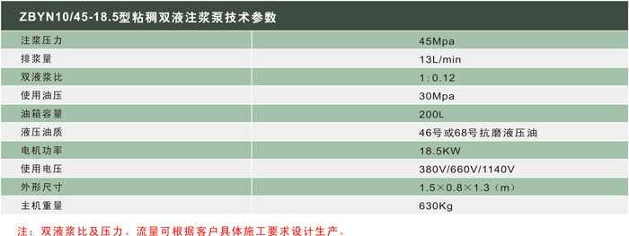 2BYN10/45-18.5型粘稠雙液注漿泵,適合高壓力、大排量注漿封堵工程。2BYN泵是低沖次,大推力的液壓往復泵,雙缸單作用,該泵利用工作介質(漿液,油液)傳遞壓力信號,組成閉環控制性能。結構簡單,調控及時準確,無超壓問題。該泵可以無級調節排漿量及排漿壓力。可注單液漿、雙液漿以及化學漿。可以倒灌進漿,注稠漿或夾顆粒漿。