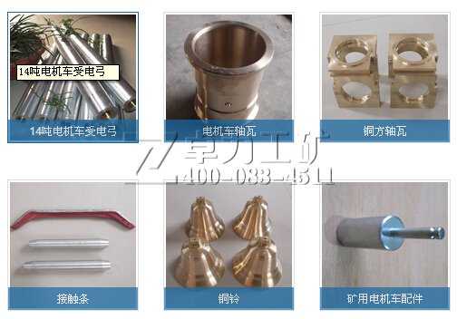 各種規格銅套,銅瓦,銅螺母,銅渦輪,銅滑板,鋅基合金套;鑄鋁件,礦用電機車配件,礦用電機車導電管(各種規格導電管、銅鈴、接觸條、銅方軸瓦),煤礦機械專用銅套,造紙機械專用銅套,破碎機銅套,硫化機銅套