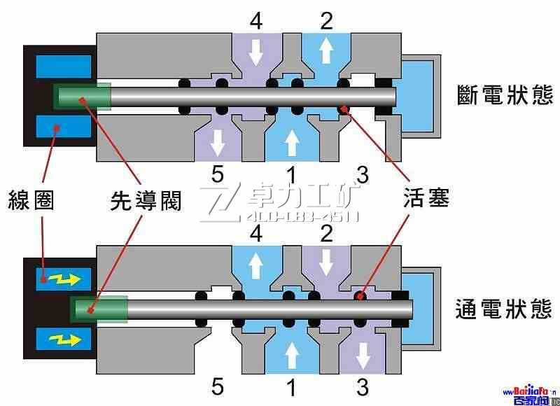 關于二位五通電磁閥原理圖電-氣轉化組件將電訊號轉化為氣動訊號,電氣訊號輸入控制了氣動輸出。最常用的電-氣轉換組件是電磁閥(Solenoid actuated valves)。電磁閥既是電器控制部分和氣動執行部分的接口,也是和氣源系統的接口。電磁閥接受命令去釋放,停止或改變壓縮空氣的流向,在電-氣動控制中,電磁閥可以實現的功能有:氣動執行組件動作的方向控制,ON/OFF開關量控制,OR/NOT/AND邏輯控制。在電磁閥家族中,最重要的是電磁控制換向閥(Solenoid actuated directional control valves)。